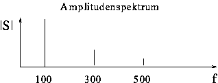 Als Beispiel seien hier die Faktoren einer Rechteckschwingung mit Amplitude 1 und Grundfrequenz 100 Hz als Fourierreihe bis zur dritten Oberwelle wiedergegeben:
